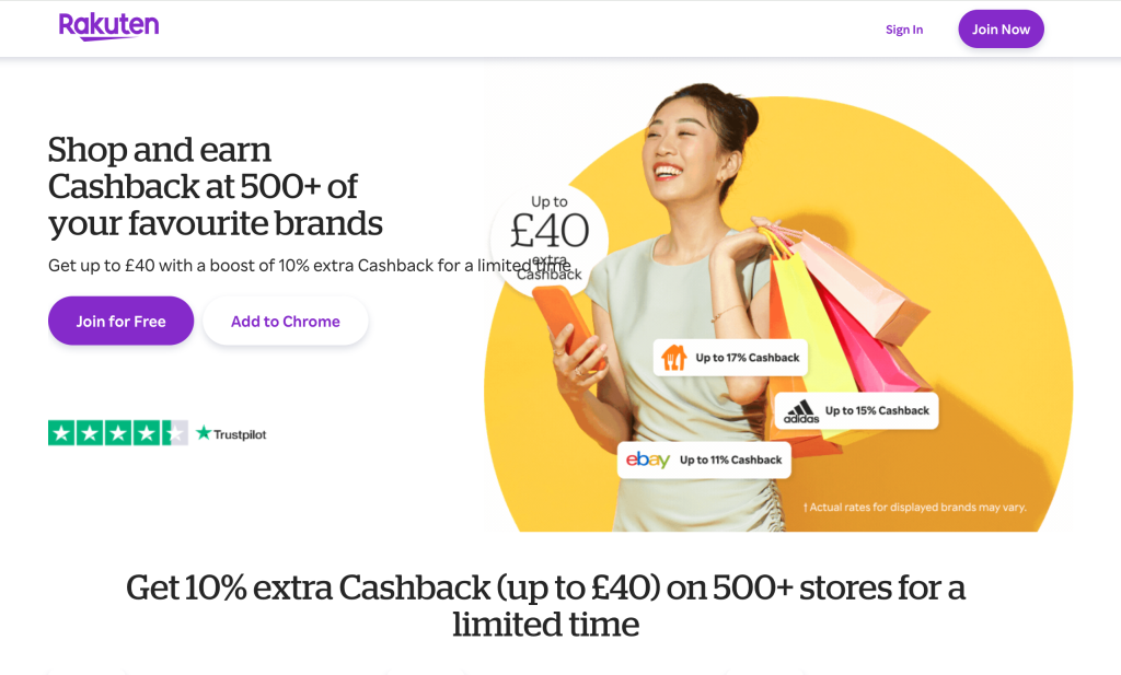 - Rakuten (Join & Get £25 Cashback (When You Spend £50)