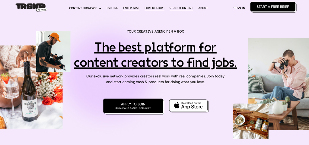 Trend is beginner-friendly and perfect if you like photography or aesthetic short videos. Brands send free products and your job is to create lifestyle photos or videos they can use online.